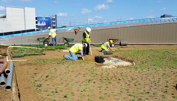 Paver systems, sedums and artificial lawns are all sources for LEED credits.